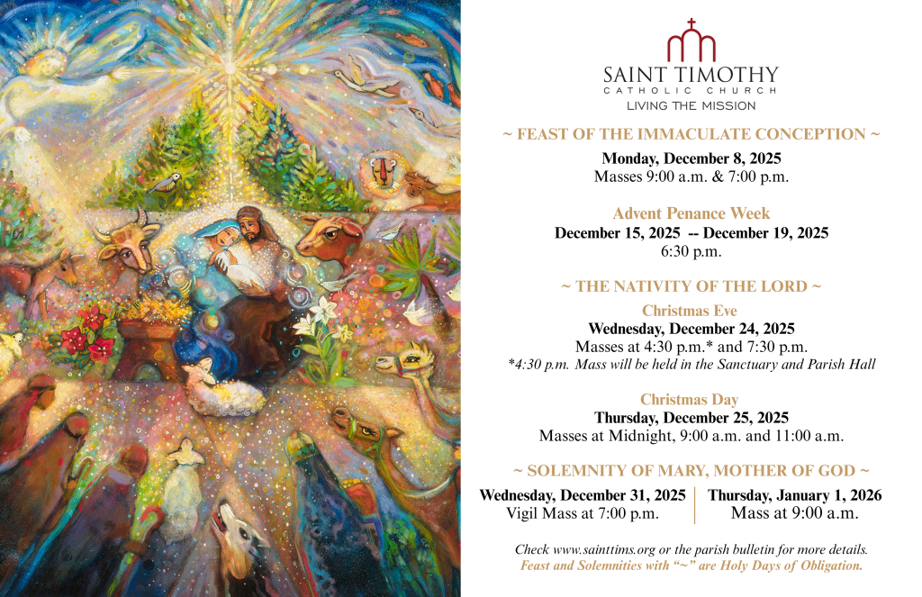Please join us for our Advent and Christmas liturgies as we celebrate the coming of the Lord with faith, gratitude, and wonder!