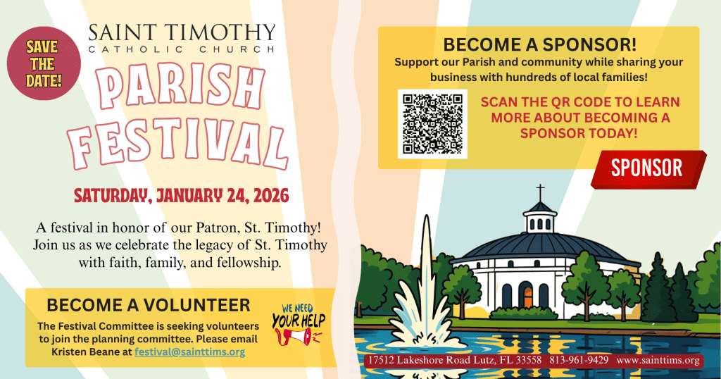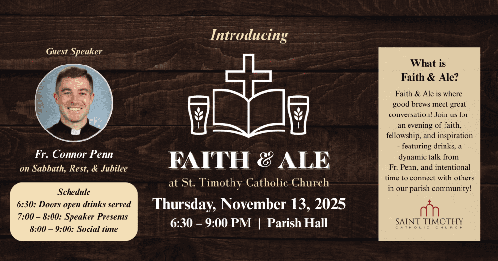 National Vocations Awareness Week is November 2-8. Be sure to stop by our Vocations Corner in the Narthex to learn more about our Vocations Ministry at St. Timothy Catholic Church. Our Vocations Ministry also posts weekly ministry updates in our Bulletin. To get involved please reach out to Art Lichte, Yankee01@icloud.com or Eddie Mendez, Eddie.mendez@sainttims.org .
