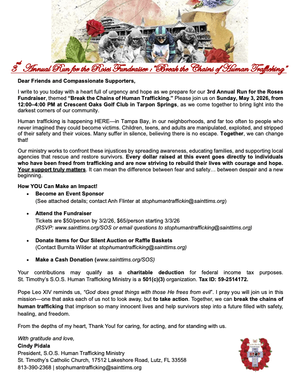 Contact: Cindy Pidala | 813-390-2368 | Stophumantrafficking@sainttims.org